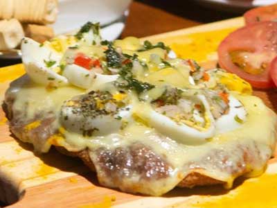 Carne o pollo (Jamón, muzzarella, morrón, aceitunas, huevo duro y papas fritas